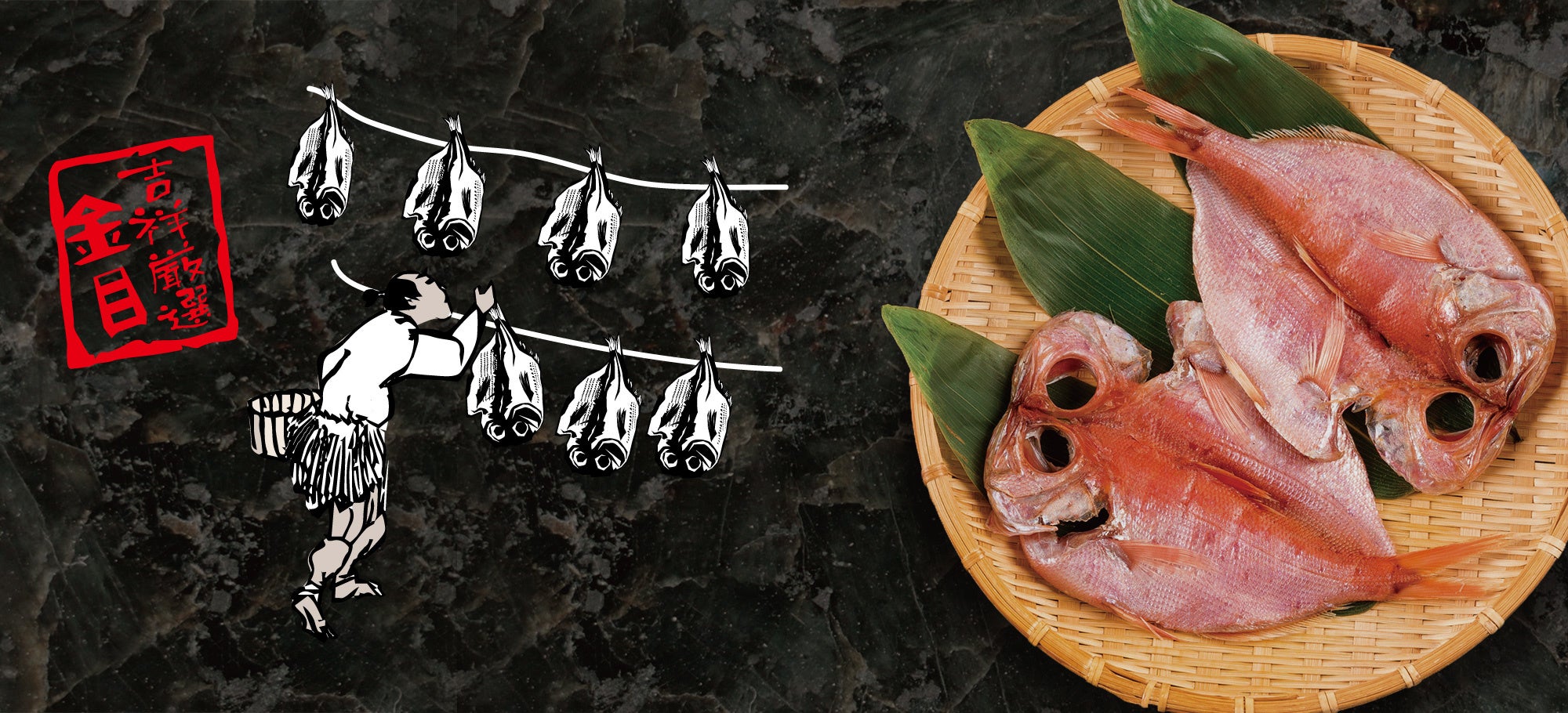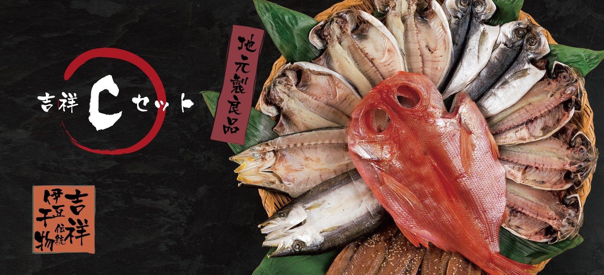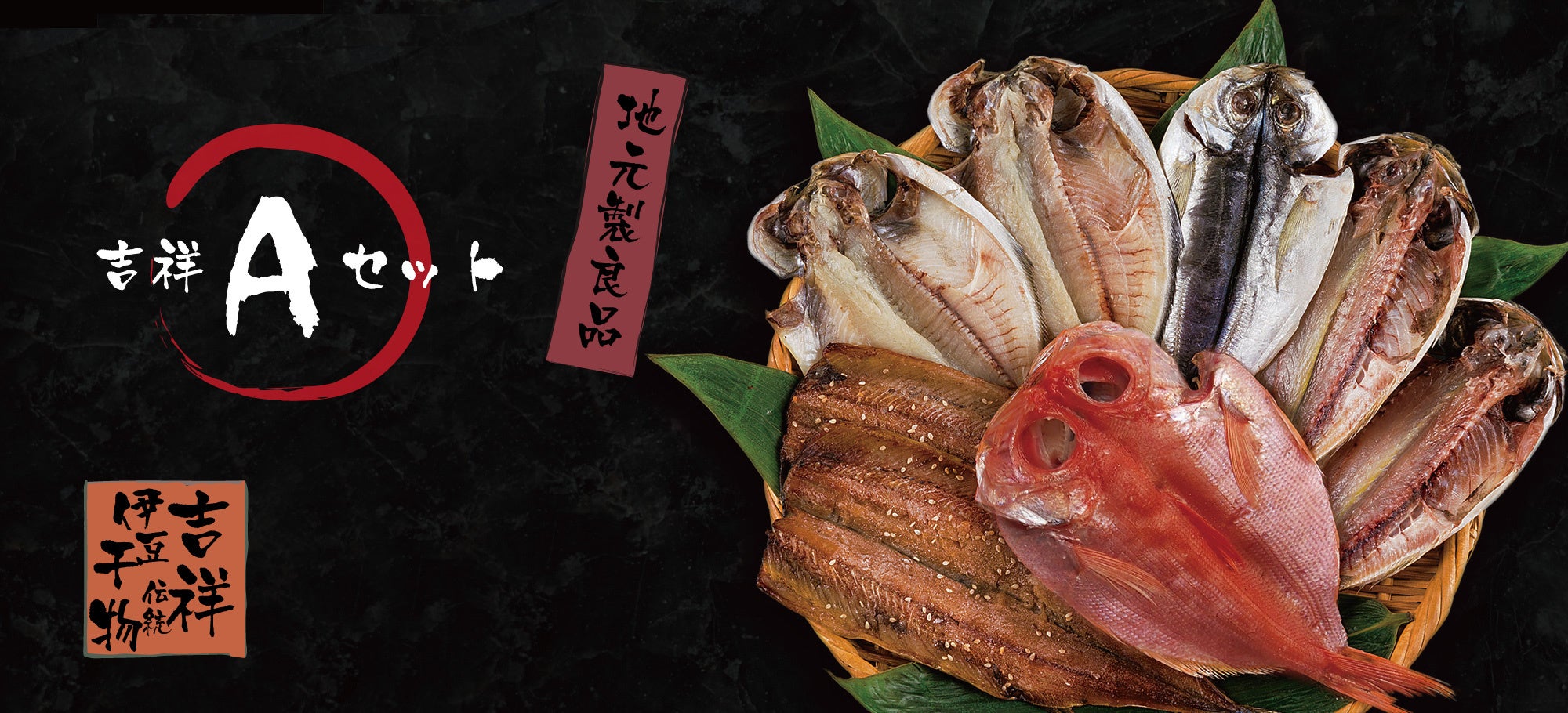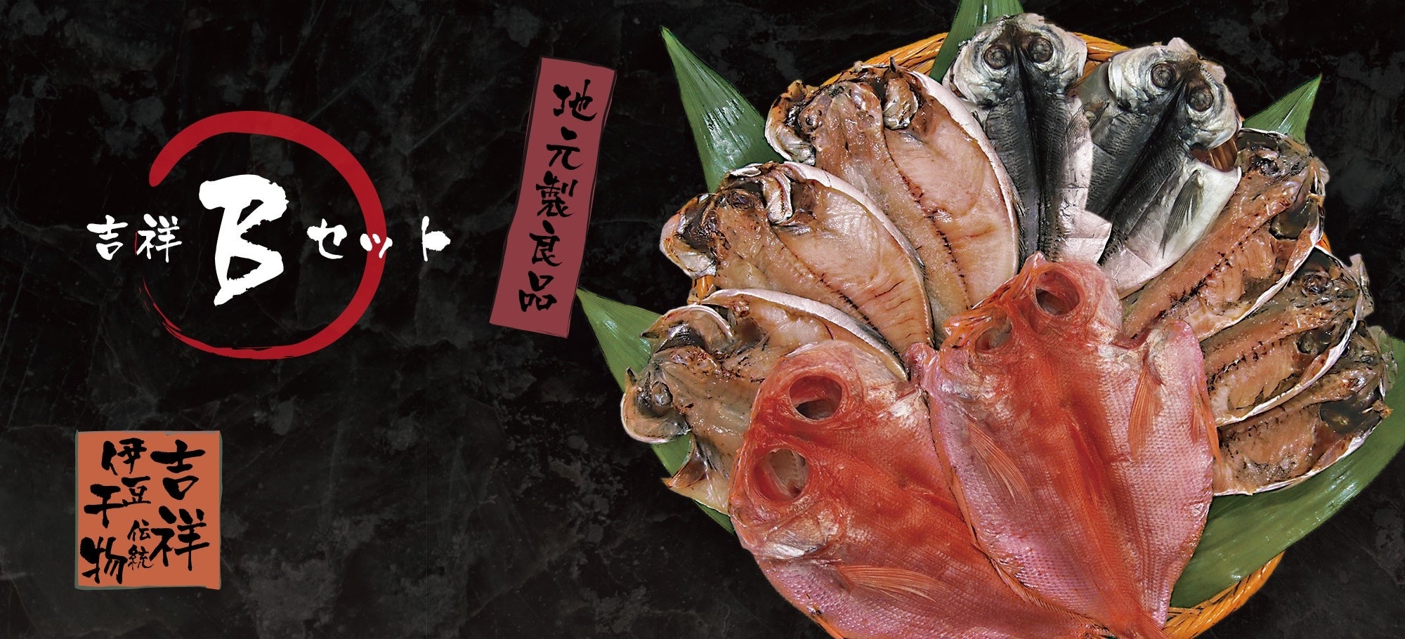 吉祥より是非、皆さまに味わって頂きたい贅沢な干物セットのご紹介。伊豆の干物として外す事の出来ない金目鯛はもちろん、希少なノドグロを加えてセットにした逸品です。