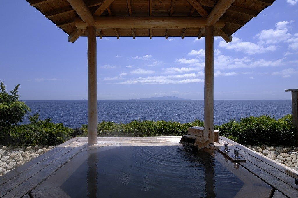 北川温泉の高台から相模灘を見晴らす全室オーシャンビューの湯宿、大人の隠れ家リゾートです。客室やレストラン、インフィニティの露天風呂から、空と海が溶けあうような青と碧の絶景をご覧いただけます。