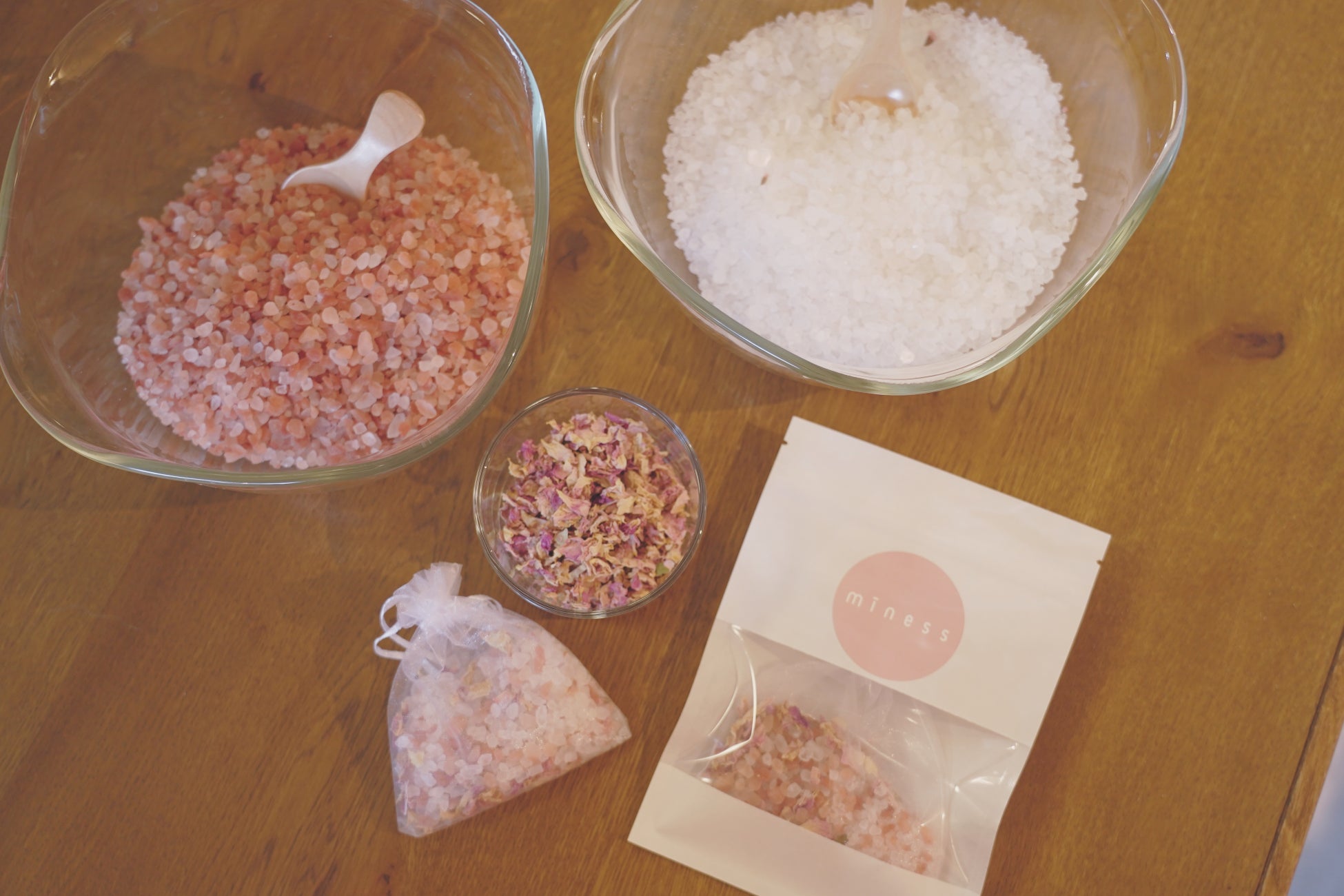 minessのアイテムと一緒に、ボディケアの時間を楽しんでいただけるオリジナルのバスソルト作りを実施しました。