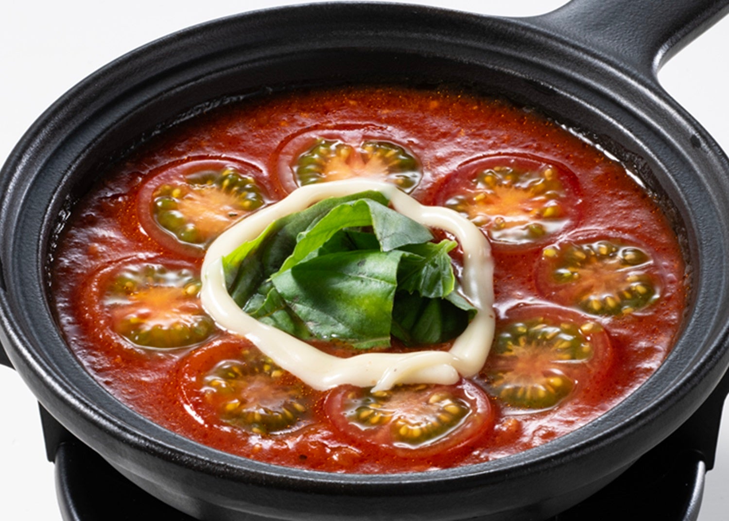 ミニトマトと生バジル、チーズフォンデュソースでシンプルな味わい。フレッシュなトマトソースが爽やかでやみつきになる味わいです。