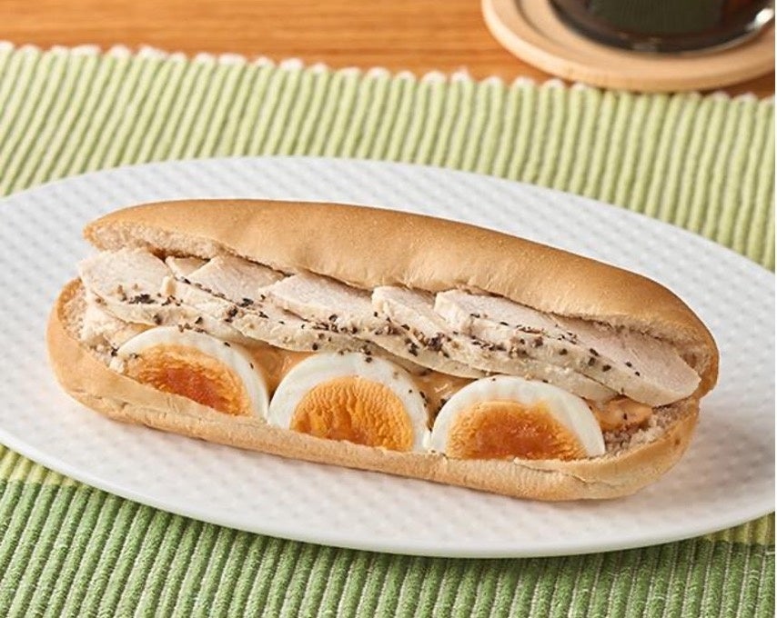 【内容】サラダチキンスライスとゆで玉子を組み合わせたたんぱく質が摂れるロールパンです。辛味と旨味を味わえるチリソ-ス風仕立てにしました。(1食あたりのたんぱく質23.0g)