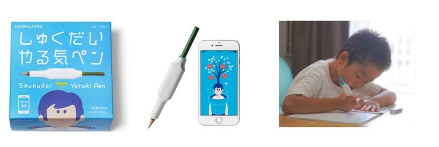 コクヨのIoT文具「しゅくだいやる気ペン」は、スマートフォンのアプリと連動して、子どもの日々の努力を「見える化」することで、学習への意欲を高めていくために開発された商品です。センサー付きアタッチメントを鉛筆に取り付け、勉強への取り組みに応じて溜まった「やる気パワー」をスマホアプリに取り込んで見える化します。「かく⇔ほめる」の好循環を生み出すことで、親子のコミュニケーションを円滑にし、子どもが自発的に学習する習慣を促していきます。発売以来、84%のユーザー親子が効果を実感しています(※)。2020年「第14回キッズデザイン賞」(子どもたちの創造性と未来を拓くデザイン部門)を受賞しました。