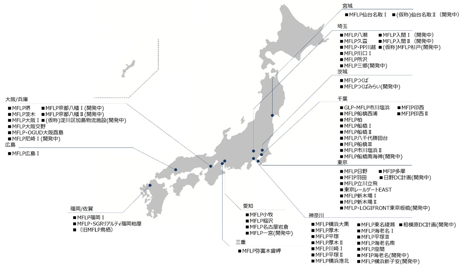 三井不動産の国内外物流施設マップ(2024年7月11日時点)