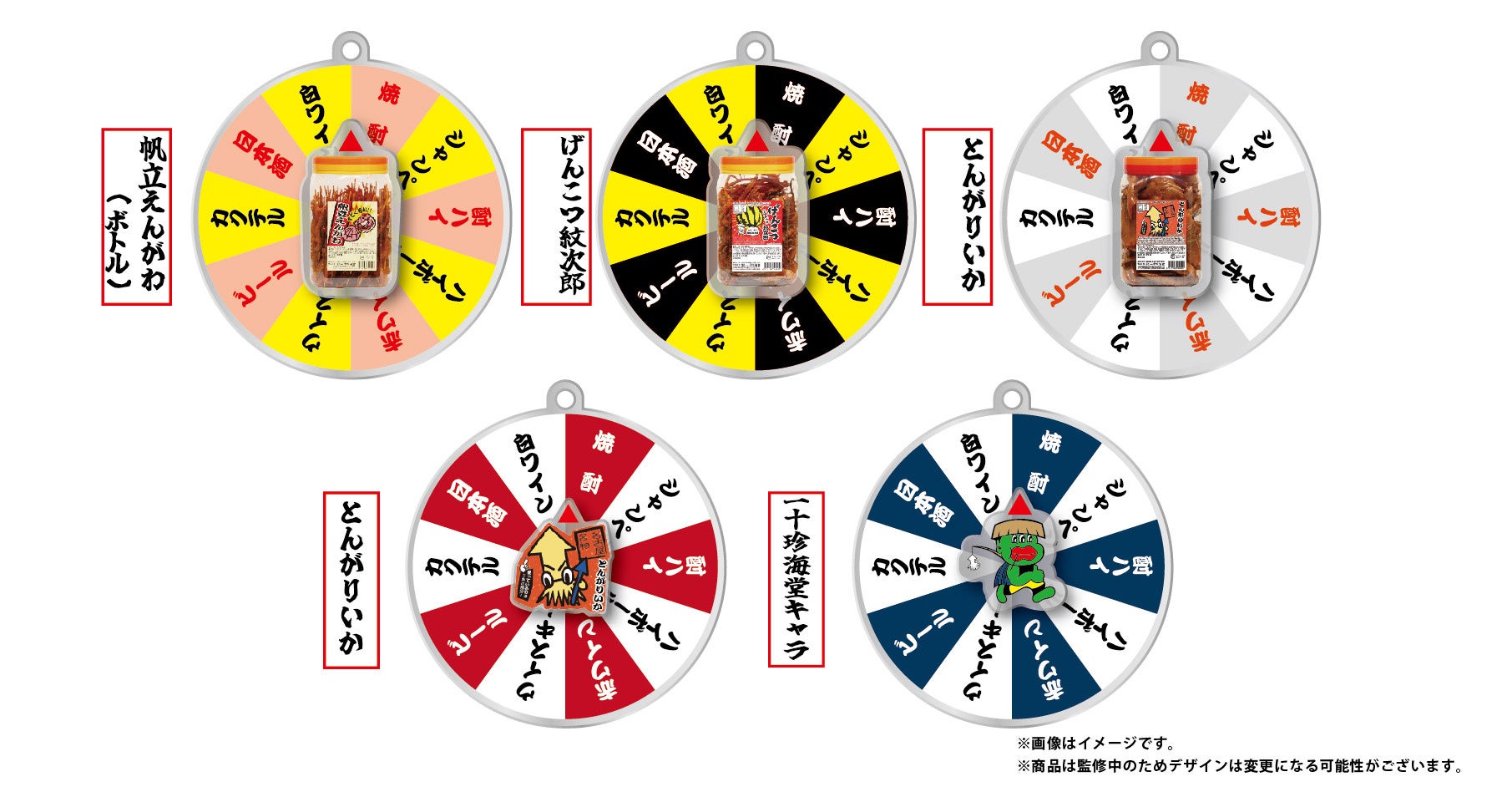 おつまみに合ったお酒を決めてくれる遊び心満点のアクリルキーホルダーです。