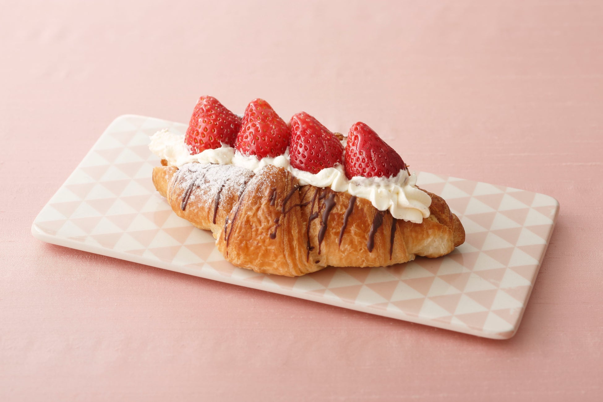 クロワッサンに特製クリームと苺を挟み、さらにハーフカットした苺をトッピング!