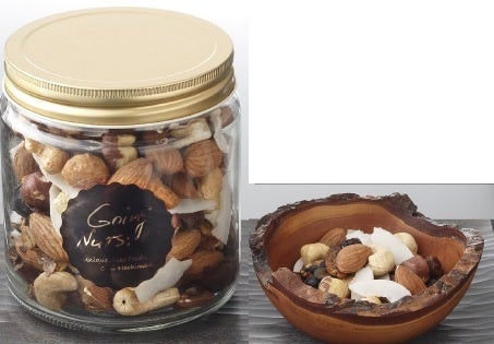 約10種類のナッツとドライフルーツを、お好みの組み合わせで1瓶に。