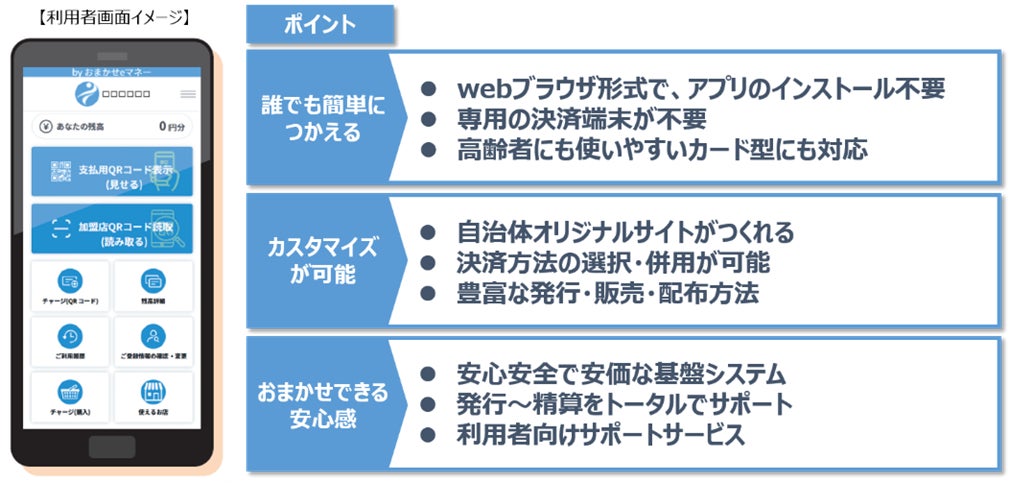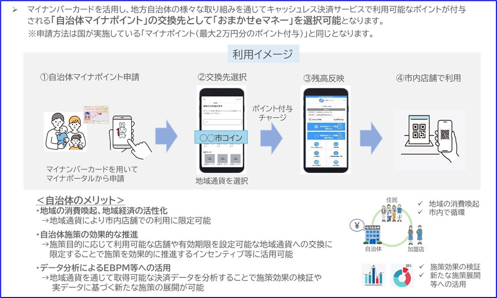 ※2.「おまかせeマネー」:NTTカードソリューションが提供する地域限定のオリジナル電子マネー(QRコード決済)を一元的にサポートするデジタル地域通貨プラットフォームです。「おまかせeマネー」はNTTカードソリューションの登録商標です。
