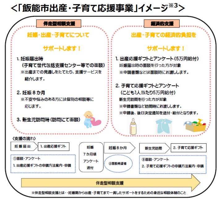 ※1.飯能市出産・子育て応援事業:妊娠期から出産・子育てまで継続的に相談に応じ、様々なニーズに即した必要な支援につなぐ「伴走型相談支援」を充実し「経済的支援」と一体化し実施する事業