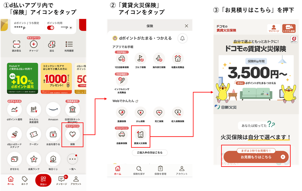 なお、本保険は、「d払い」アプリの「保険アイコン」から簡単にお申し込みが可能です。