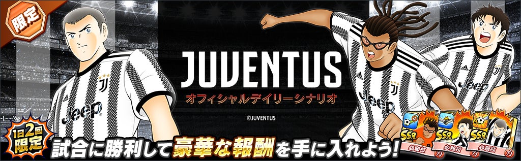 KLab株式会社(本社:東京都港区、代表取締役社長:森田英克、以下「KLab」)が提供するスマートフォン向け対戦型サッカーシミュレーションゲーム『キャプテン翼 ~たたかえドリームチーム~』では、1月20日よりJUVENTUS 公式ユニフォームを着用したゼダン、ダビィ、アレッサンドロ・デレピが新選手で登場する「JUVENTUS オフィシャルキャンペーン」を開催いたします。