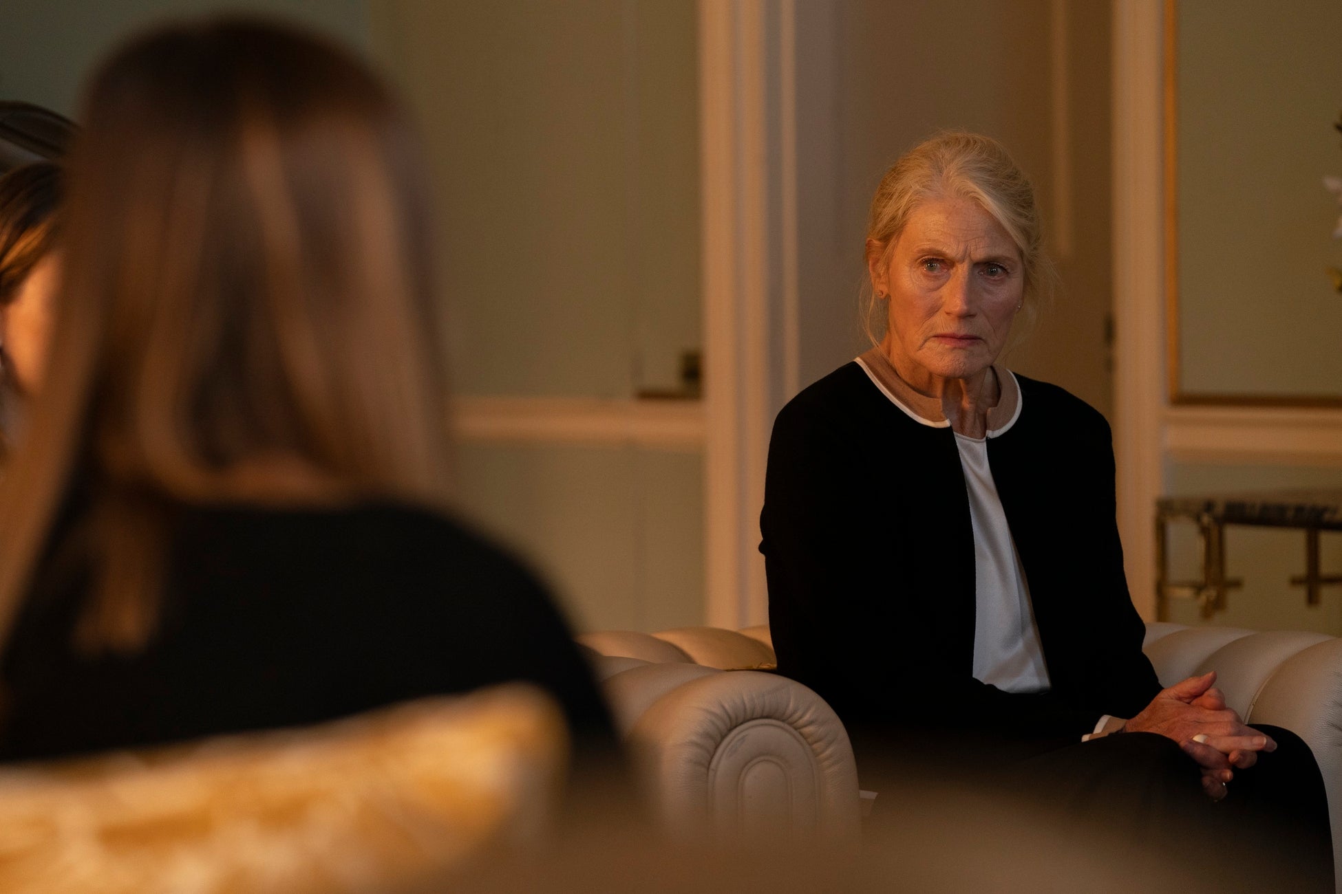 女王から悪役までこなす、英国が誇るクラシック女優ジェラルディン・ジェームズのインタビューが到着!鋭い眼光で相手を威圧する高慢な女性・ジョイを楽しんで演じきる。