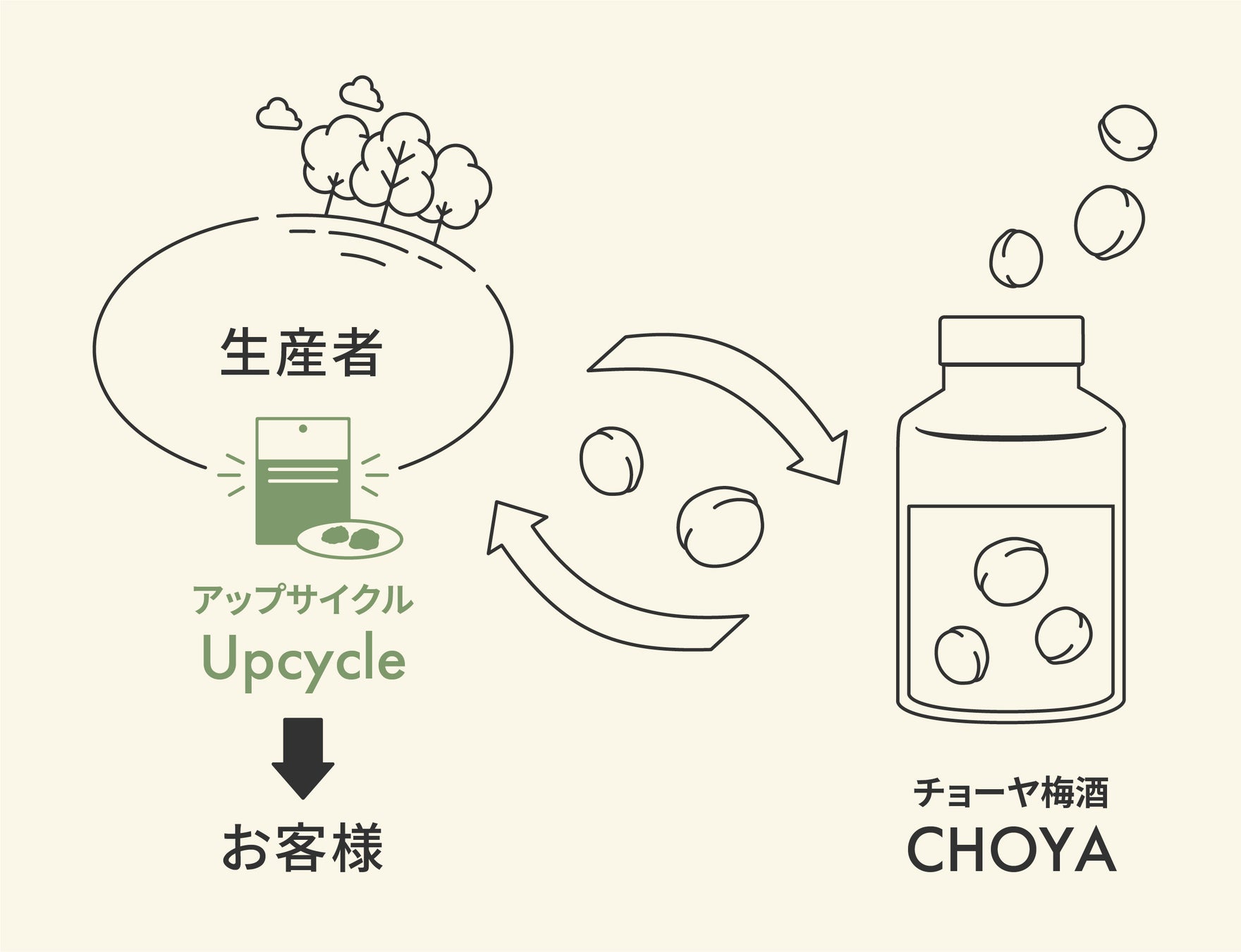 このたび正式にUpcycle by Oisixによる企業コラボレーション第一弾として、食味をさらに向上させ新発売。梅の可能性を追求し、より良く進化させたものをお届けしたいと願うチョーヤ梅酒と、誇りを持って梅づくりをしてきた生産者の想いに応えられる、より環境負荷が低く、新たな価値を加えた商品が生まれました。