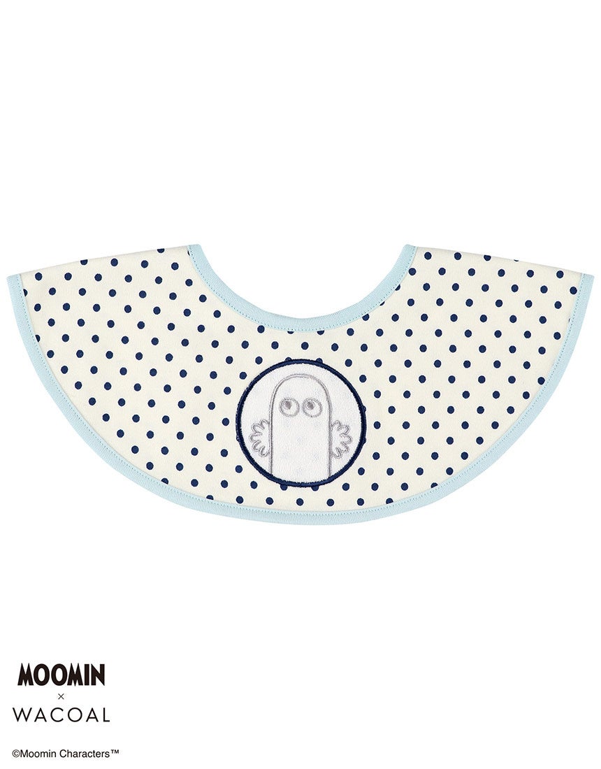 「ムーミン」の中でも人気の高い、白くてミステリアスなキャラクター、ニョロニョロが主役のベビースタイ。ドット柄のかわいらしいプリント素材にニョロニョロのアップリケをアクセントとして配置しました。