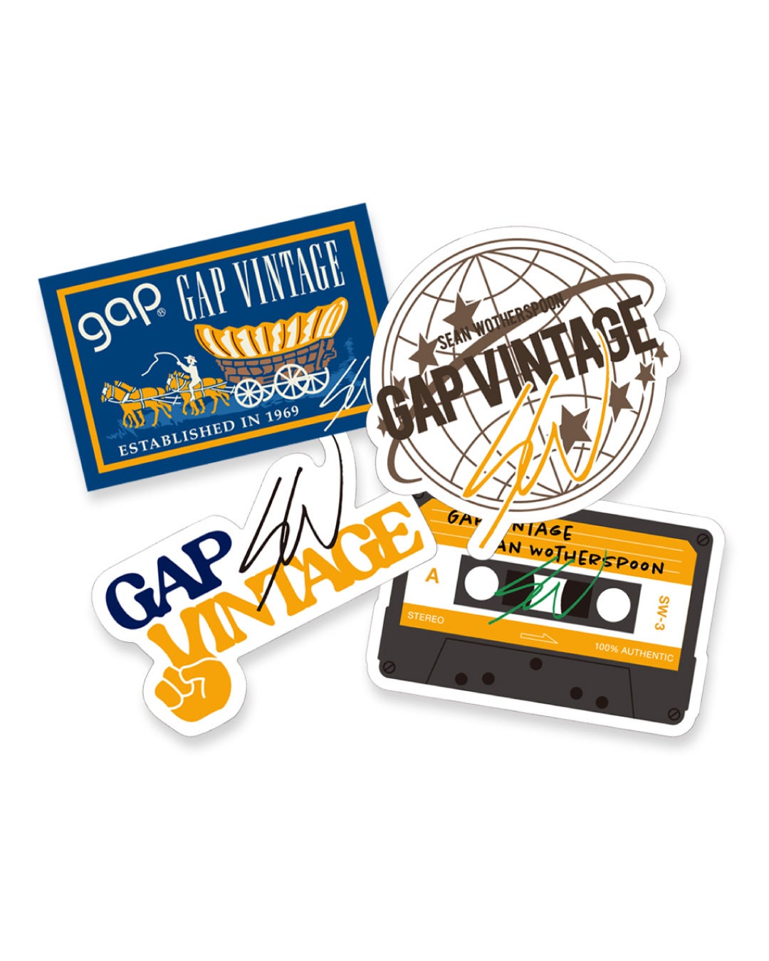 GapVintage をご購入されたお客様を対象に、アーカイブアイテムのブランドタグやヴィンテージのカセットテープなどにインスピレーションを得てデザインされたオリジナルステッカーを1枚プレゼント。