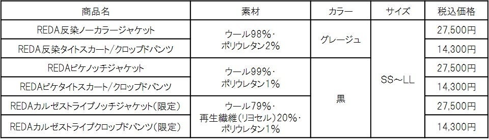 イタリアREDA社の環境配慮ファブリックを使用したプレミアムストレッチセットアップの新色が登場!