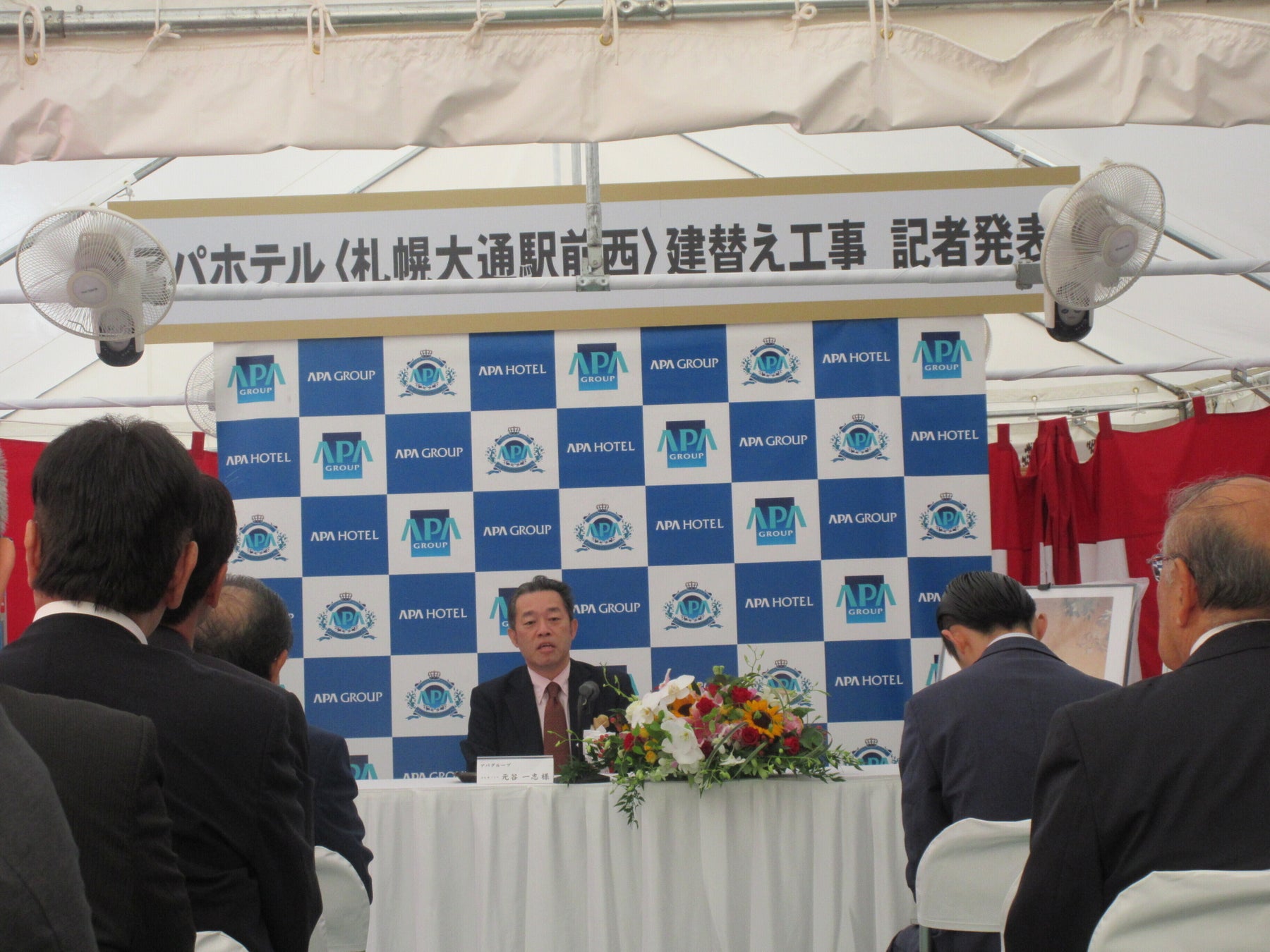 起工式に先立ち行った記者発表において、アパグループ社長 兼 最高経営責任者(CEO)の元谷 一志は、「本日、アパホテル〈札幌大通駅前西〉の起工式を行うことができ嬉しく思う。今回建替えにより60室のホテルが218室に生まれ変わり、グループとして札幌市内で初の新築ホテルとなる。アパホテルは新規開業の度に「1ホテル1イノベーション」を掲げて進化しており、「おやすみスイッチ GOOD NIGHT スイッチ」の導入など、日本発のホテルブランドとしてきめ細かい仕様・サービスを進化させ、今後さらに増加する訪日外国人に対応し、地域の経済振興に貢献したい。また、この他、札幌市内では、札幌駅前での大型プロジェクトやアパホテル〈札幌豊水すすきの駅前〉54室から152室の建替えを予定しており、今後も、選択と集中を考え事業を進めていきたい。」と述べた。