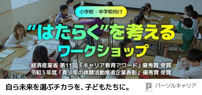 パーソルキャリアでは、-人々に「はたらく」を自分のものにする力を-をミッションとし、はたらく一人ひとりが自らの機会と可能性を正しく知り、選択し、行動できる「キャリアオーナーシップを育む社会の創造」を進めています。その一環として取り組んでいるのが、全国の小学校・中学校に無償で提供している「“はたらく”を考えるワークショップ」です。