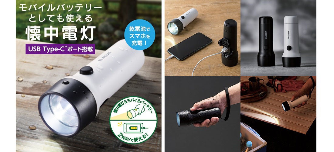 <DE-KD05BK 防災 乾電池式懐中電灯 モバイルバッテリー機能付 ブラック>