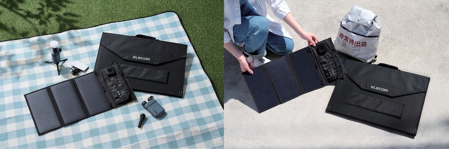 防災・アウトドアに最適な太陽光に当てるだけで、充電ができるモバイルソーラー充電器です。スマートフォンはもちろん、パソコンやタブレット、モバイルバッテリー、ポータブルバッテリーなど同時に3台まで充電できます。