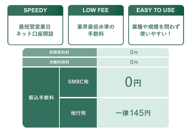 インターネットでのお申込、Web面談による審査等を経て、最短翌営業日での口座開設が可能となります。加えて、インターネットバンキングによる振込等の手数料も業界最低水準でご提供し、利便性とコストパフォーマンスを両立したサービスを実現しています。