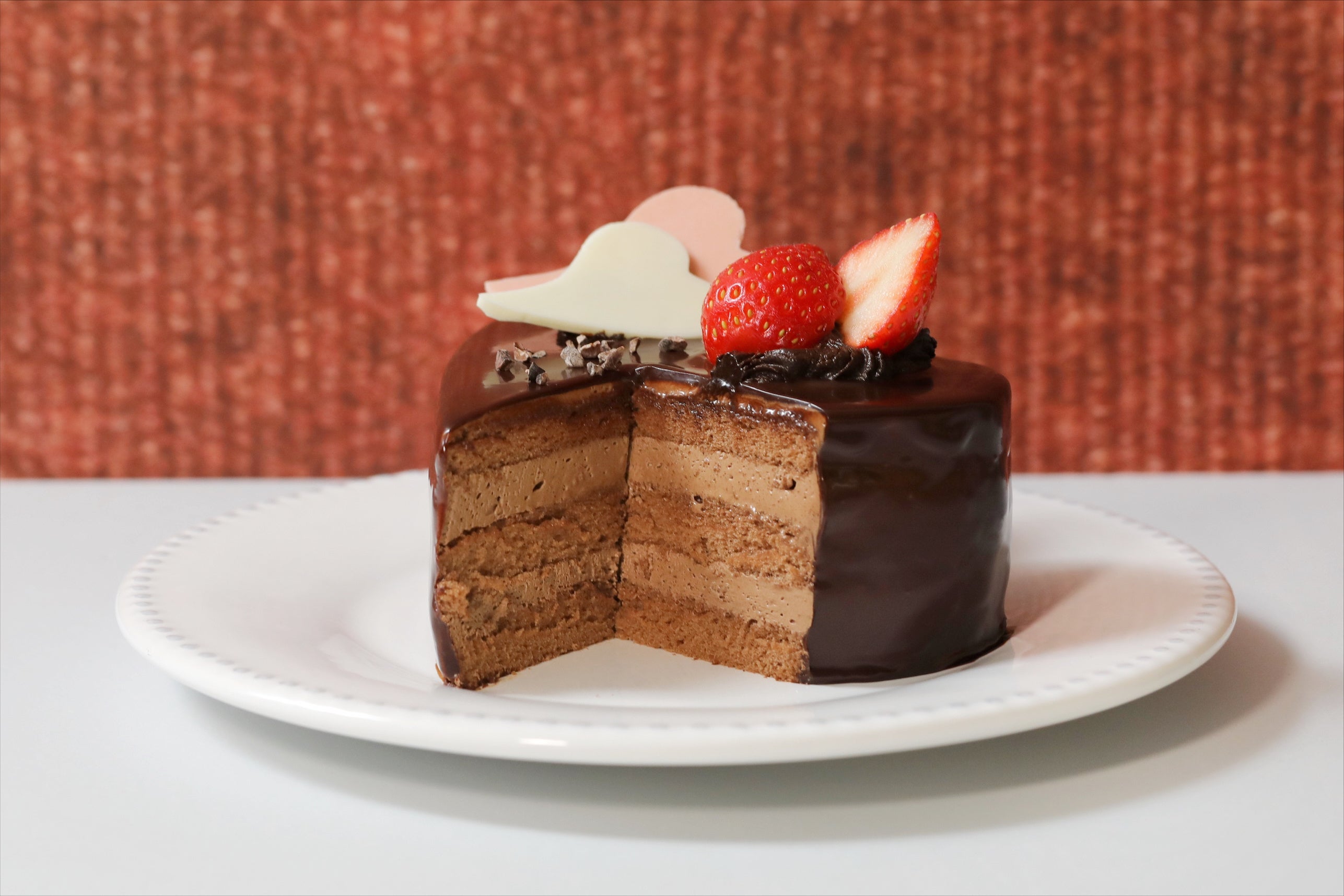 - カットすると現れるチョコレートムースとココア風味のスポンジの美しい断面にもぜひご注目ください。