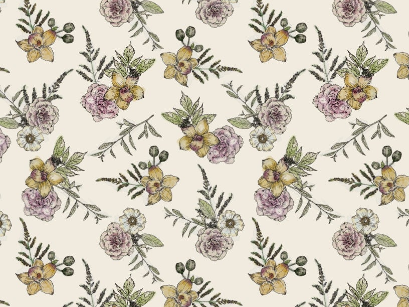 シンビジウム、クレマチス、ジニアの3種のお花をシンプルに各色モノトーンの配色で落とし込みました。