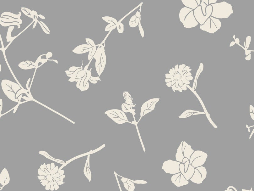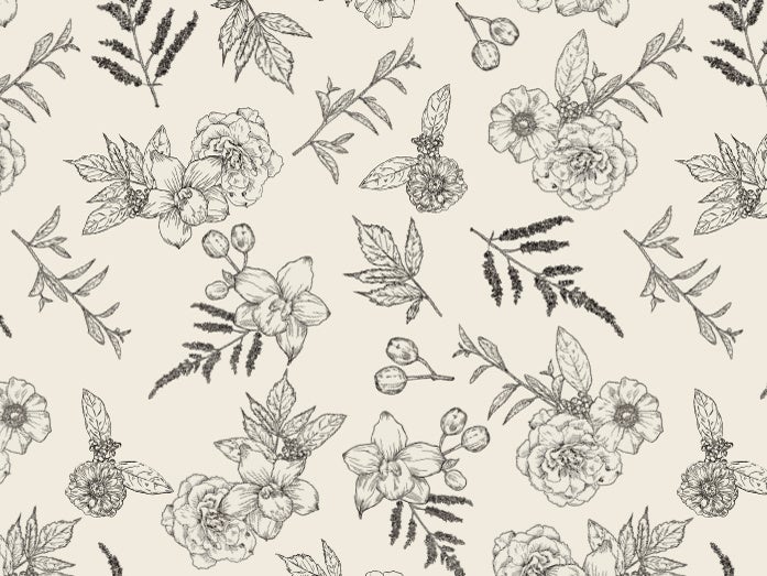 アスチルベ、シンビジウム、シュウメイギク、バラの4種の植物を使用した繊細な線画でシックな印象に仕上げました。