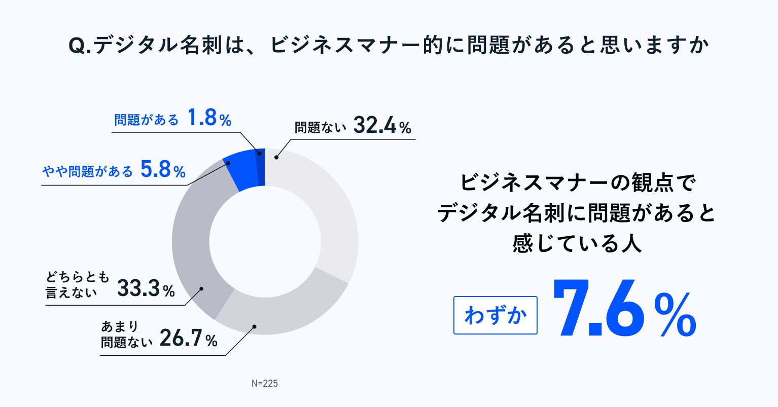 ・「デジタル名刺交換はビジネスマナー上の問題がある」と回答した人は1割未満にとどまる