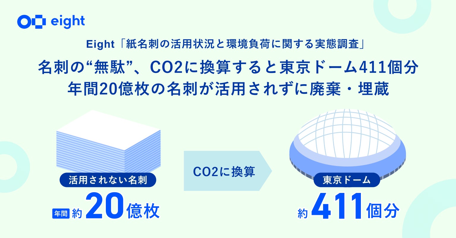 Eight、アースデイを前に「紙名刺の活用実態」を調査。20億枚の紙名刺の“無駄”が生むCO2、東京ドーム411個分に