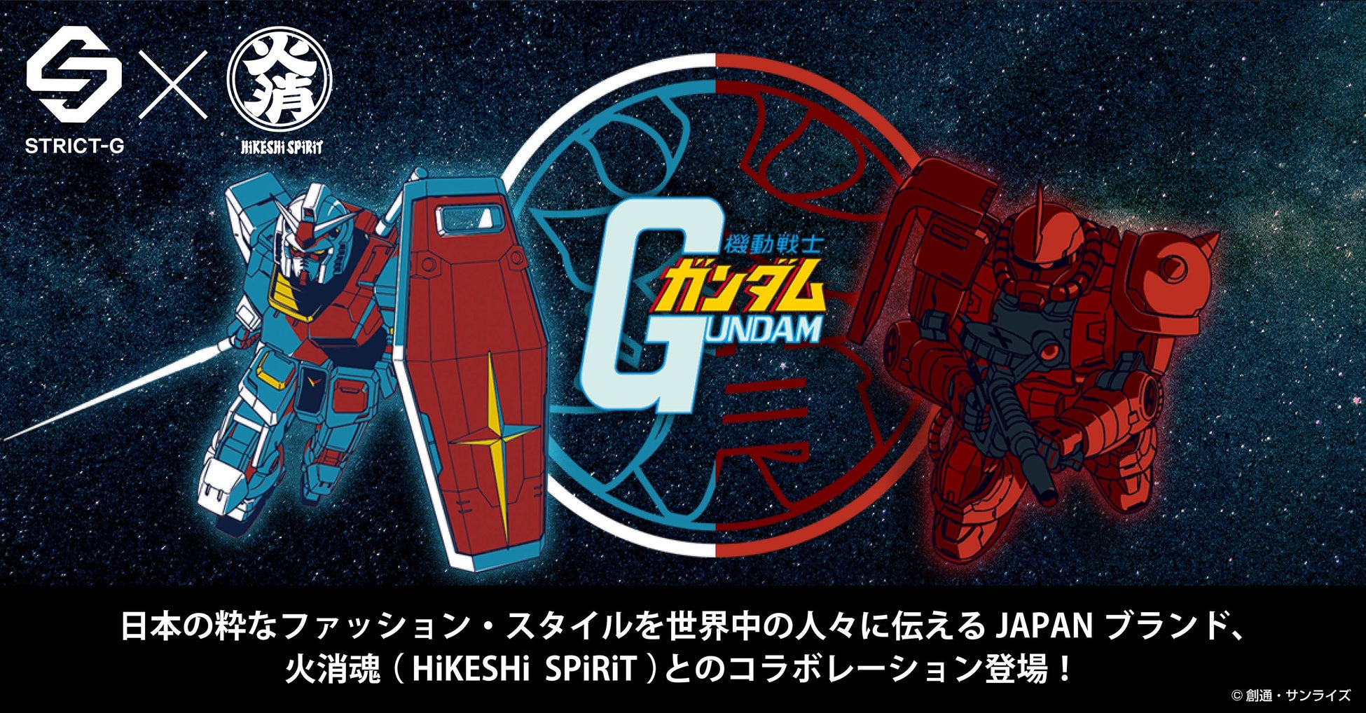 株式会社バンダイ ファッションブランド事業部では、ガンダムの世界観を取り入れたアパレルショップ「STRICT-G」にて、2025年3月29日(土)より、「日本の粋」を現代に発信するブランド「火消魂(HiKESHi SPiRiT)」と『機動戦士ガンダム』のコラボレーション企画が初登場!また、店頭販売に先駆け、バンダイナムコグループ公式通販サイト「プレミアムバンダイ」( https://p-bandai.jp/ )では、2025年3月28日(金)13時より予約販売を開始いたします。また、「火消魂 浅草店」、公式Webでの販売も予定しています。