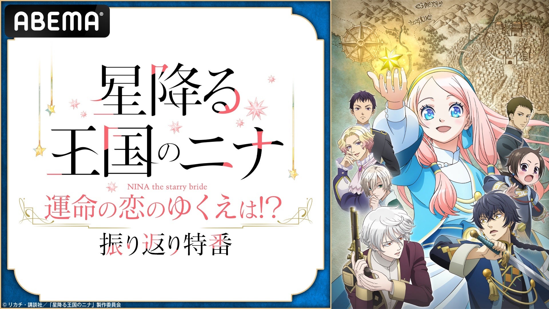 新しい未来のテレビ「ABEMA」は、新作秋アニメ『星降る王国のニナ』の特別番組『TVアニメ「星降る王国のニナ」運命の恋のゆくえは!?振り返り特番』を、2024年11月18日(月)夜9時より独占無料放送いたします。