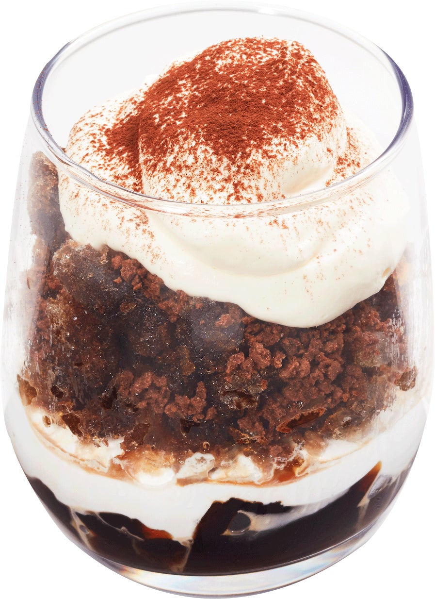 ほろ苦いコーヒーでつくったグラニータに、コーヒーゼリーやチーズ風味のムース、ココアパウダーを合わせ、ティラミスに見立てたドルチェです。なめらかなふんわりホイップや、優しい甘さのムースは、コーヒーの苦みと相性抜群。ぜひ、ジョリーパスタで初夏にピッタリな大人のドルチェをお楽しみください。
