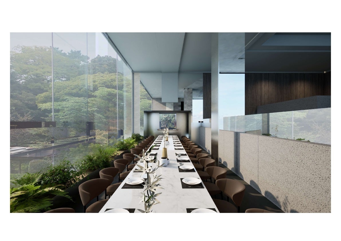 「NOOK」とは隠れ家のような小さな空間を意味し、有明の特徴的な大きなガラス越しに広がる庭園を感じながら、居心地のよいおふたりとゲストだけの隠れ家をイメージ。