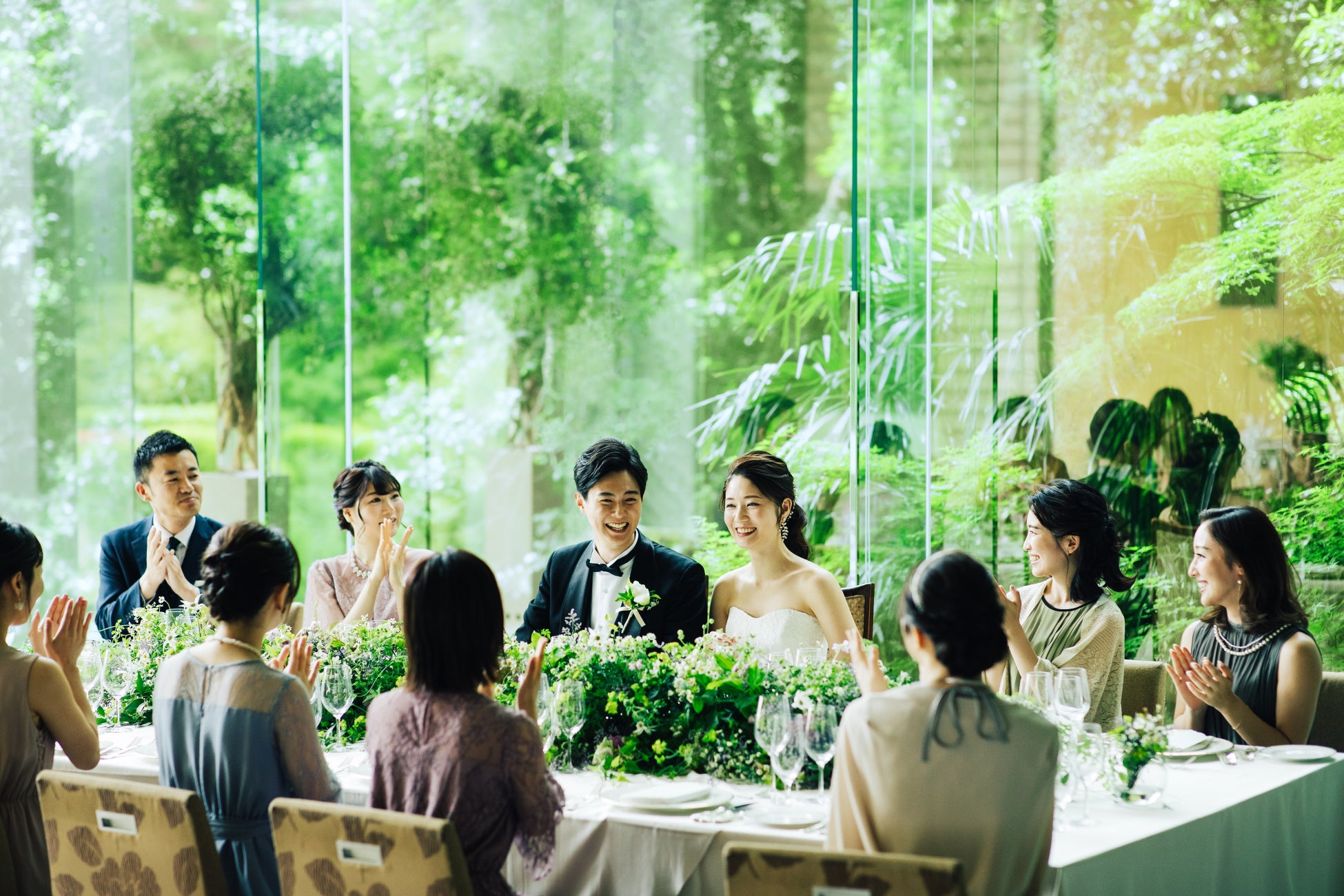 新郎新婦とゲストが同じテーブルを囲み、食事をしながら会話を楽しむのもおすすめです。