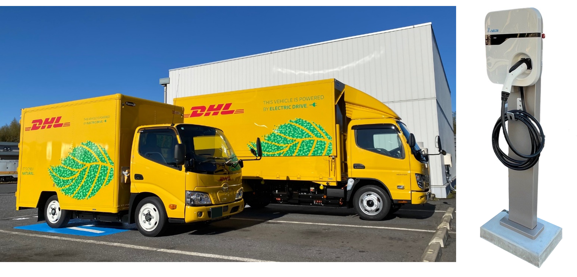 DHLジャパンは、世界有数のインテグレーターであり、DHLグループとしてロジスティクス関連のCO2排出量をネットゼロにする「ミッション2050」の目標を掲げ、2030年までにラストワンマイル配送車両の60%を電動化する取り組みを進めており、その一環として当社と連携して充電器を整備しました。