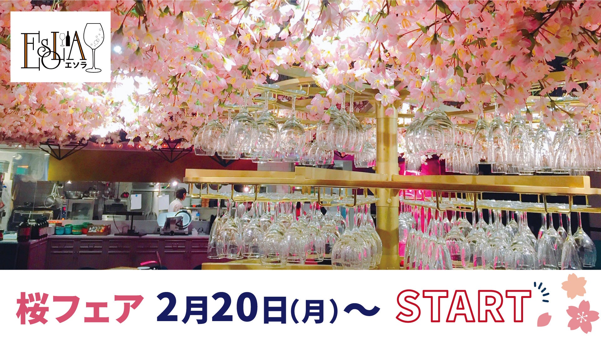 【ワイン飲み放題1,000円(税込)】「ESOLA(エソラ) 新宿」にて、2月20日(月)より天井を2,500本の桜で装飾した"桜フェア"第1弾がスタート!