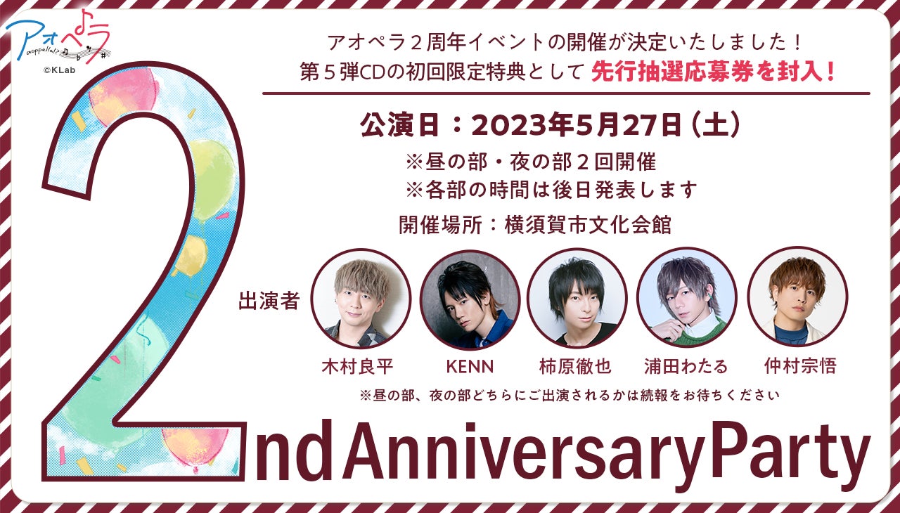 - 5月27日(土)、28日(日)に2周年イベント『アオペラ aoppella!? -2nd Anniversary Party-』開催決定!