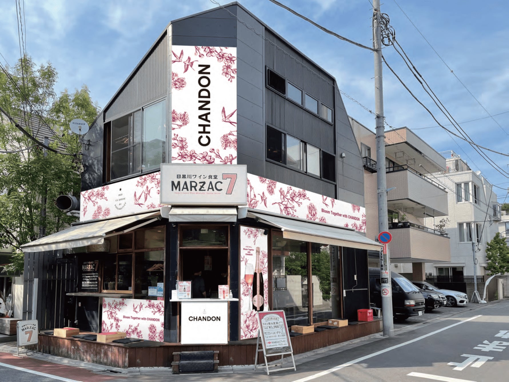 目黒川の桜並木沿いにて毎年好評を博している「MARZAC 7」と、今年で12年目のコラボレーション。シャンドン スプリング仕様の店舗ラッピングとポップアップバーを今年も期間限定で開催し、中目黒のお花見をより一層盛り上げます。また、桜の開花期間中に限り、店舗バルコニーでシャンドン ロゼをご提供。桜並木を眺めながらお花見シャンドンをお楽しみいただけます。