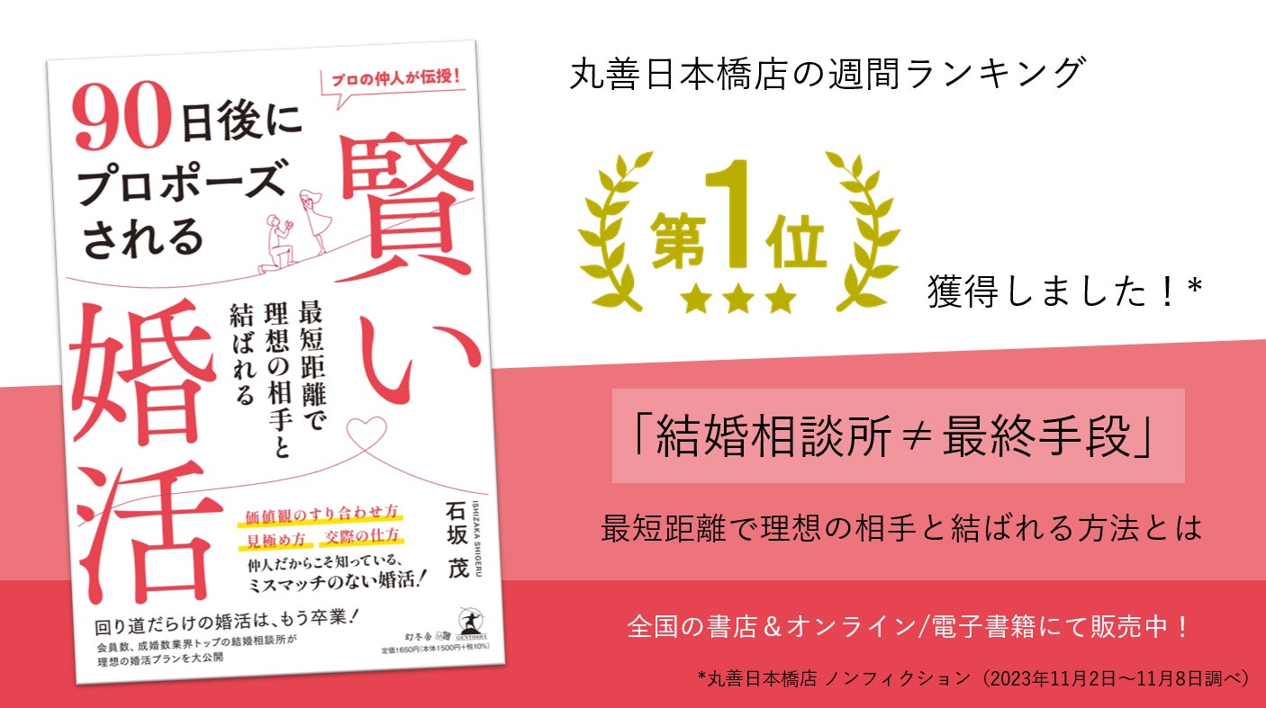 書籍『90日後にプロポーズされる賢い婚活』が週間ランキング1位を獲得しました