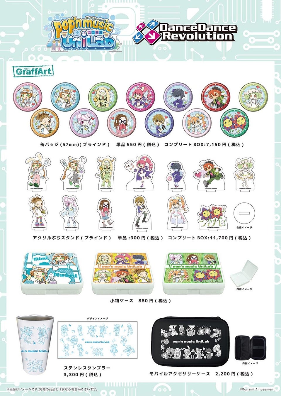 公式イラスト&GraffArtを使用して、たくさんの新作グッズが登場した『pop’n music』『DanceDanceRevolution』とeeo Cafeのコラボカフェ。