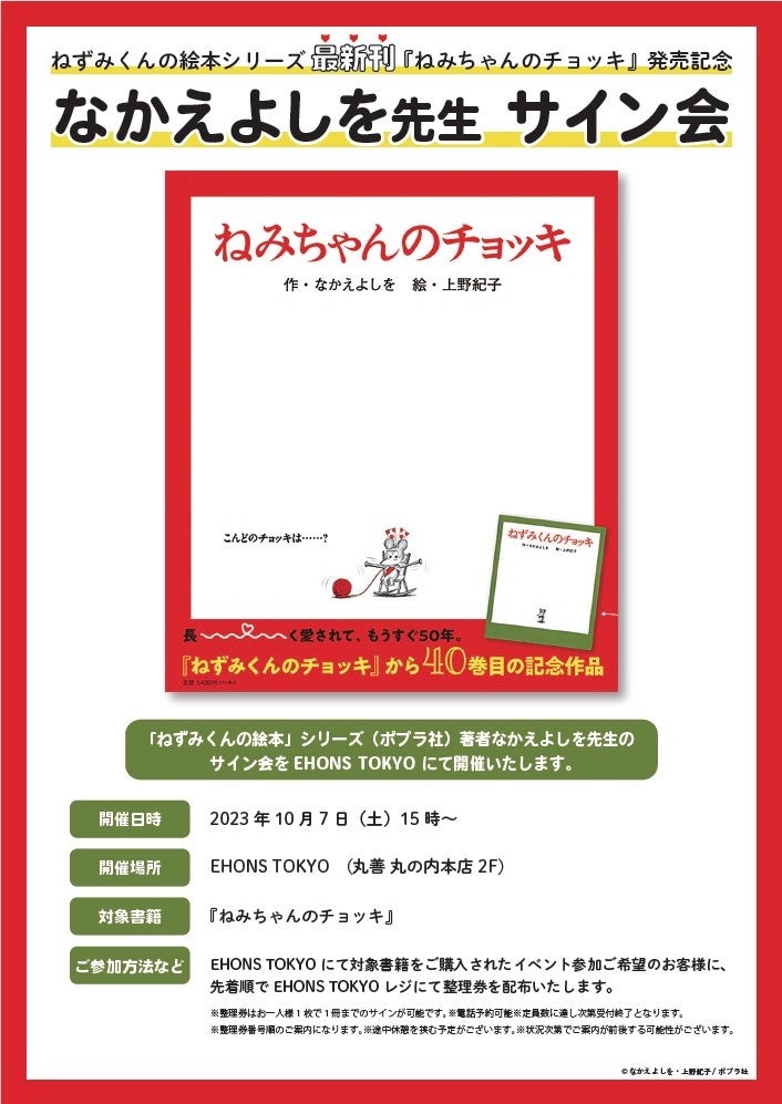 本作の刊行を記念して、2023年10月7日(土)、EHONS TOKYO(丸善 丸の内本店 2F)にて、作者・なかえよしをさんのサイン会の開催が決定しました。