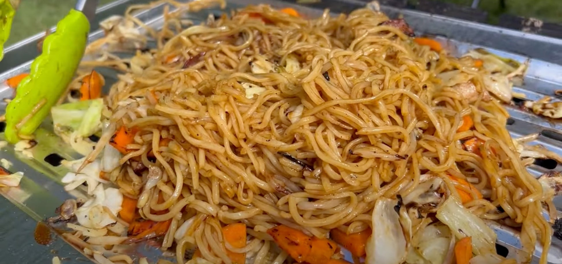 炭火の煙による燻し効果もあり、炭火焼きそばなども楽しめる。