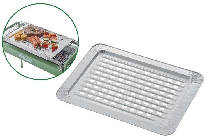 お手持ちのグリルのサイズに合わせ、プレートを切ったり両サイドを折り曲げてセット可能で小さなグリルでもズレずに使用可能。別売りの「LOGOS the ピラミッドTAKIBI」のゴトクにもセット可能。