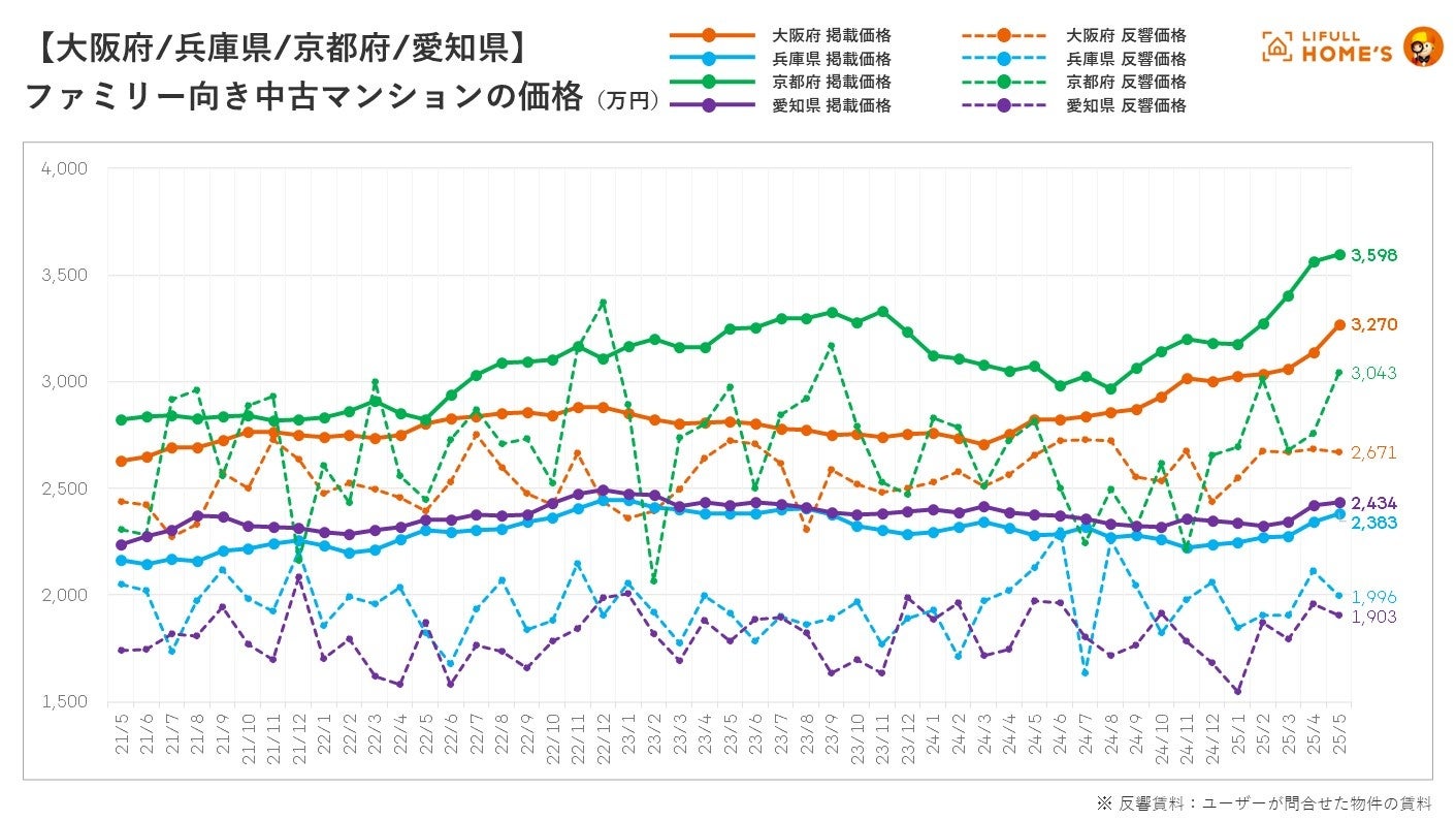 ファミリー向き中古マンションの平均掲載価格は、首都圏で4,668万円(前年同月比117.9%)、近畿圏で2,976万円(前年同月比112.1%)と、いずれも2021年2月の計測開始以降で過去最高となりました。