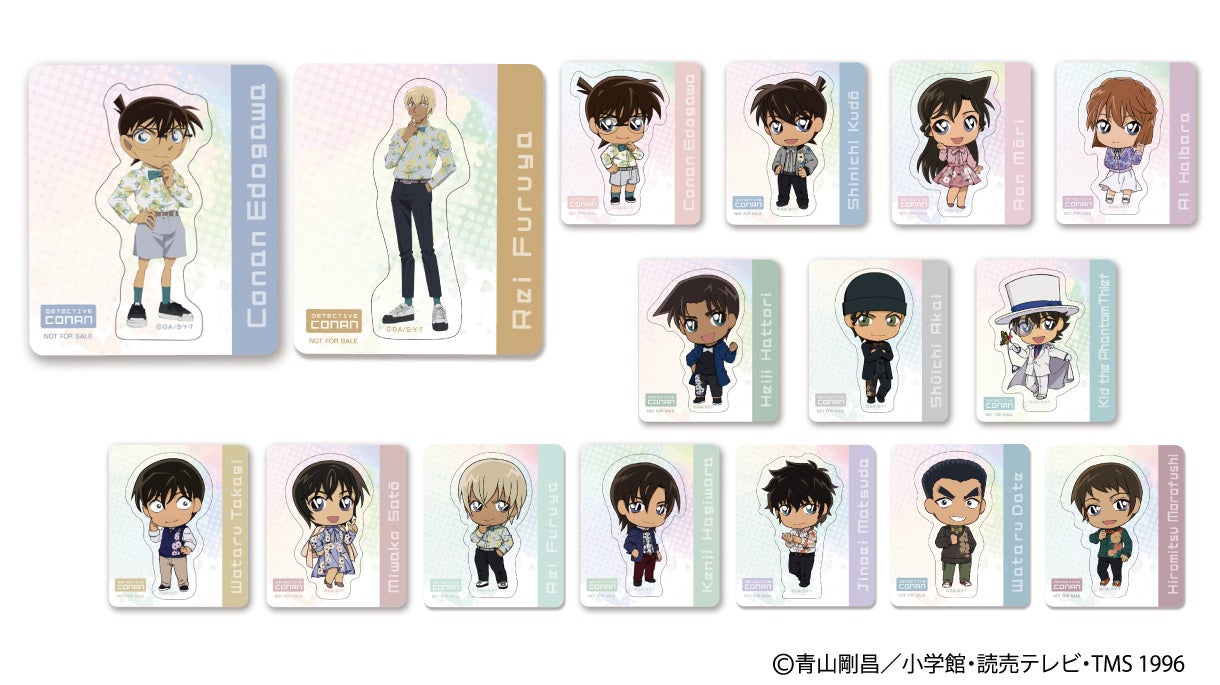 | □ナムコオリジナルステッカー ・全16種(ランダム配布) ・サイズ:約H7×W6cm ・4月15日から配布開始 マットな質感で、キャラクター部分がダイカットになったステッカーです。 「江戸川コナン」「降谷零」は等身デザインとデフォルメデザインの2種があります。 |