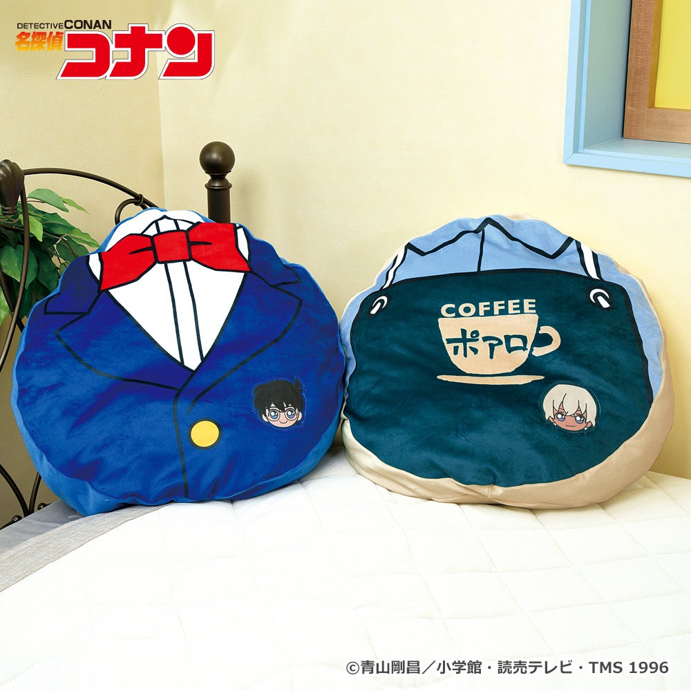 | (2)名探偵コナン プレミアムモチーフクッション ・全2種 ・4月3週登場予定 ・サイズ:約W50×D50×H30cm 「江戸川コナン」と「安室透」の衣装をデザインした、クッションです。 |