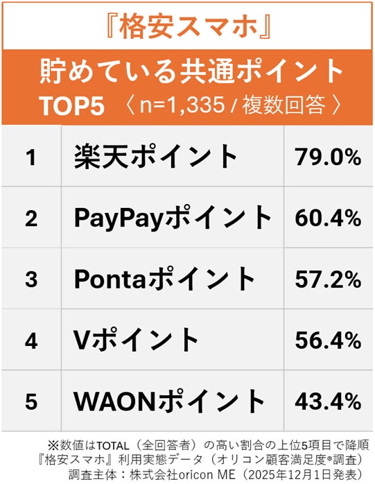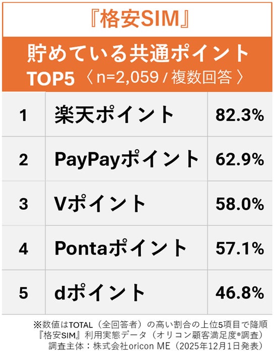 『格安SIM』『格安スマホ』ともに「楽天ポイント」が最多 約8割が利用