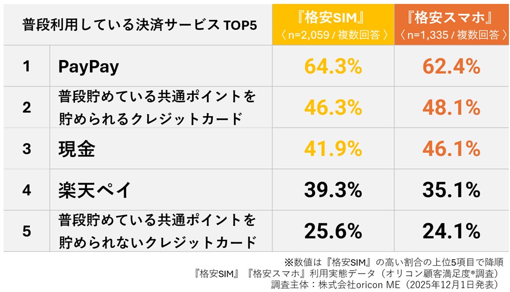 『格安SIM』『格安スマホ』ともに「楽天カード」が最多 「PayPayカード」が続く