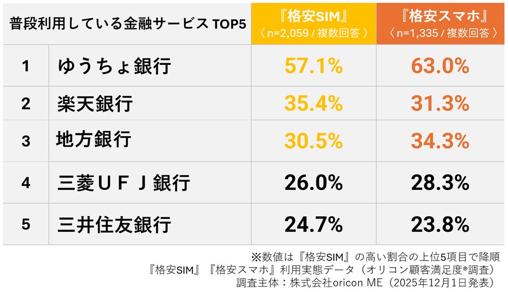 SIM・スマホ利用者ともに「ゆうちょ銀行」が約6割に