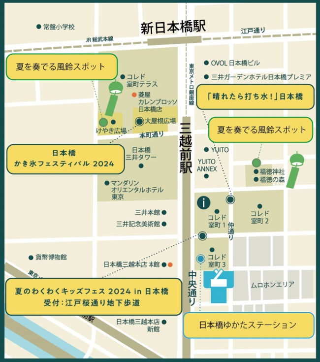 “見て” “体験して”涼む「晴れたら打ち水!」日本橋・「夏を奏でる風鈴スポット」